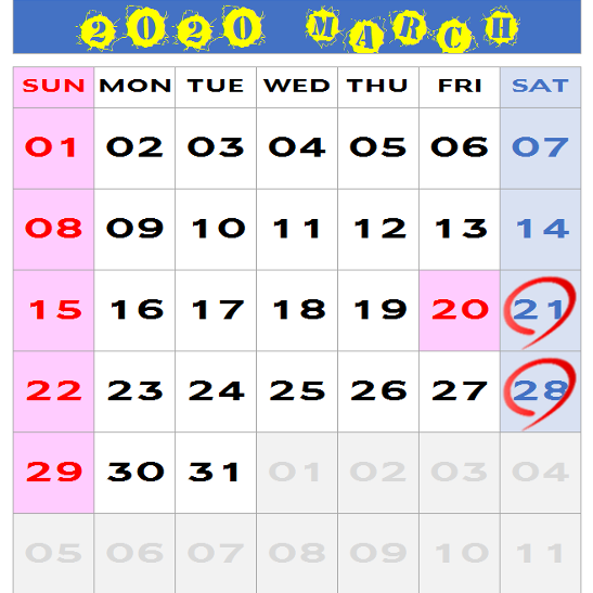 【中止】2020年3月スケジュール
